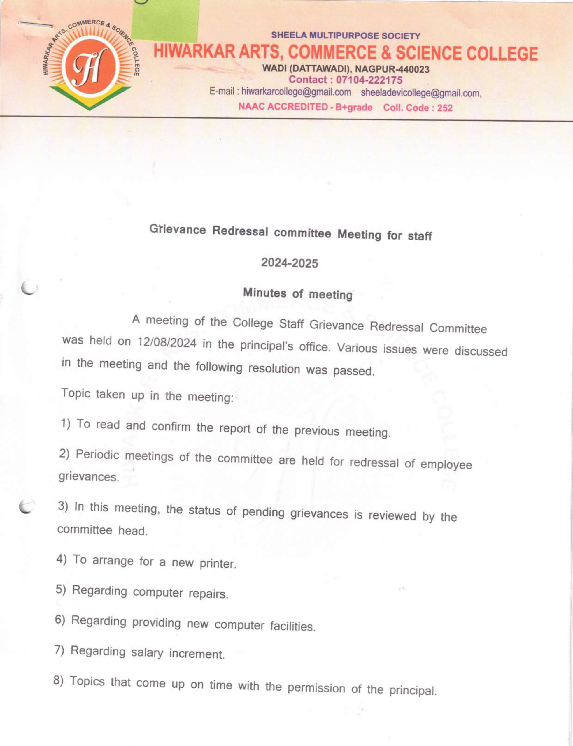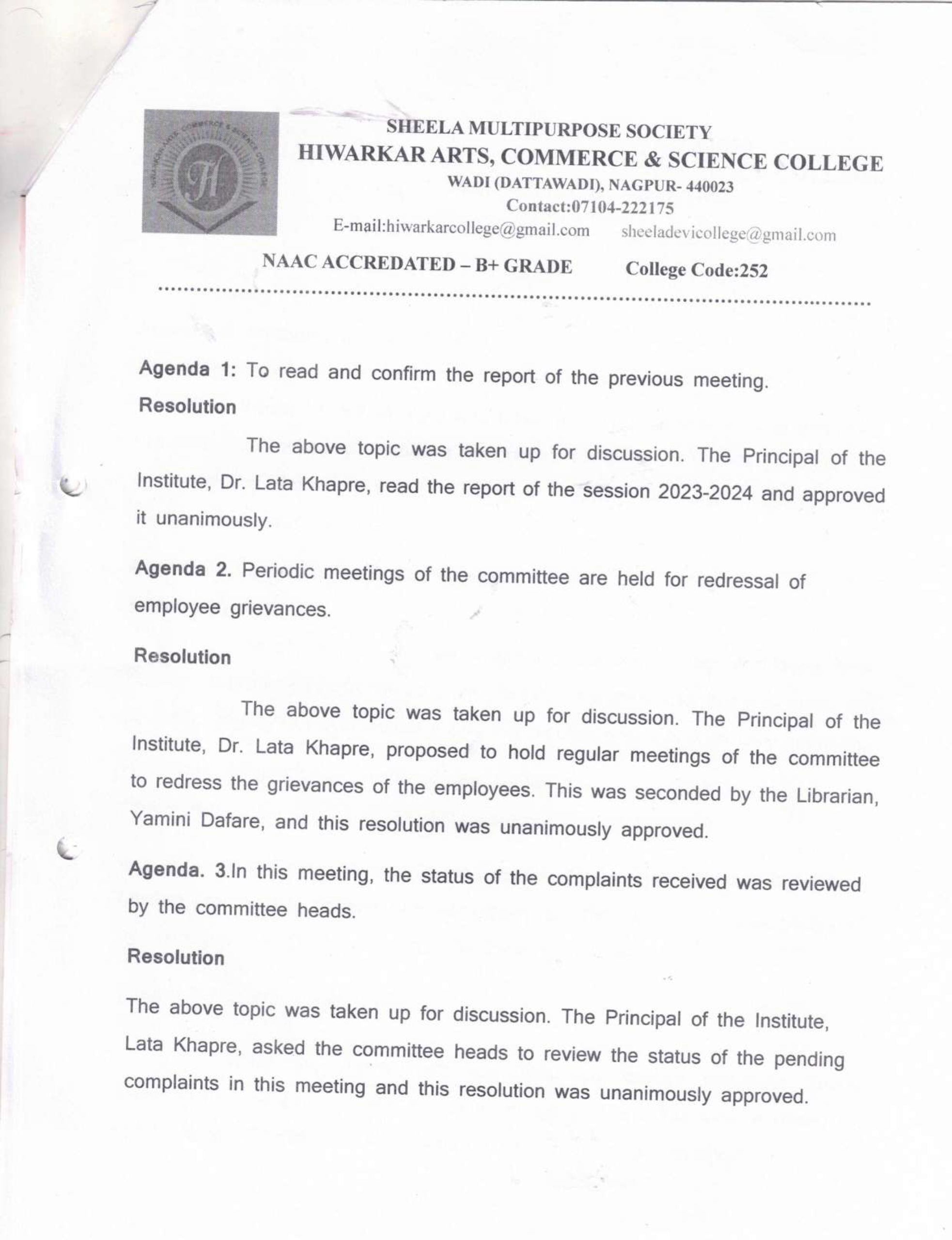 Internal Complaint Committee - Staff